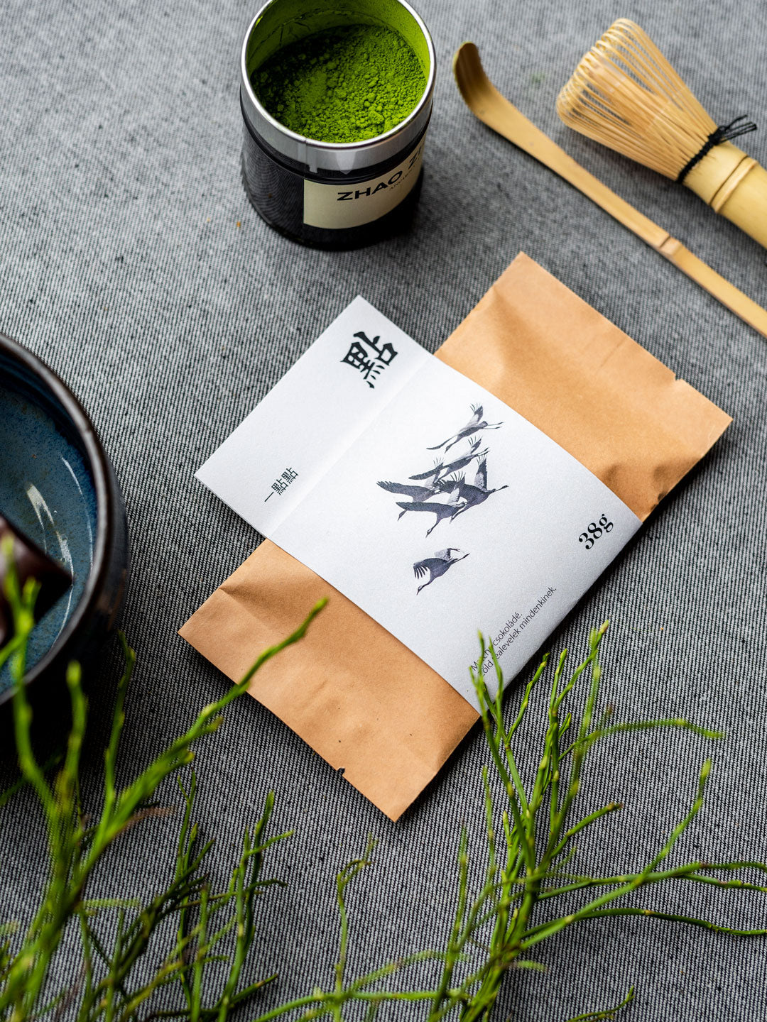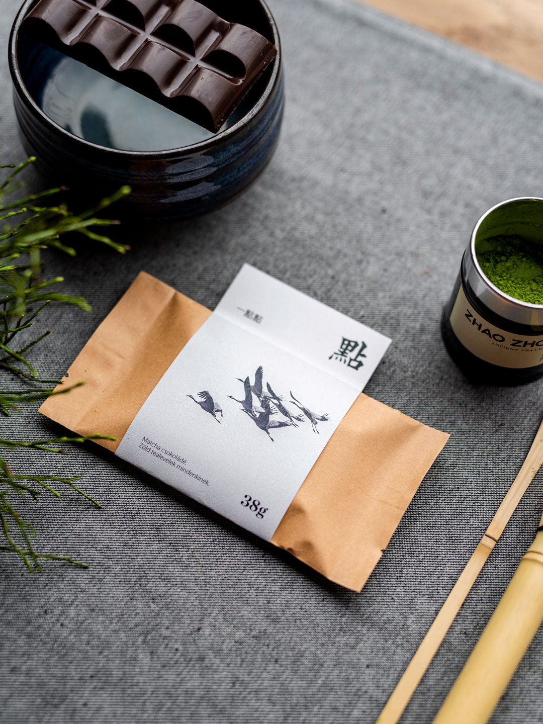 Soft-bitter dark chocolate with a vivid, green matcha aftertaste.