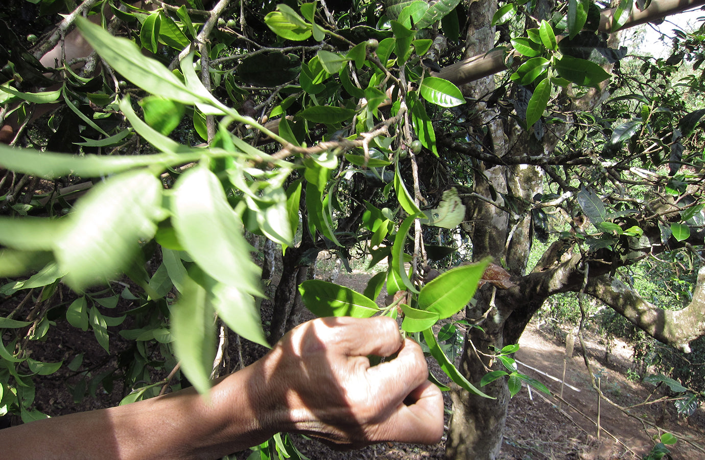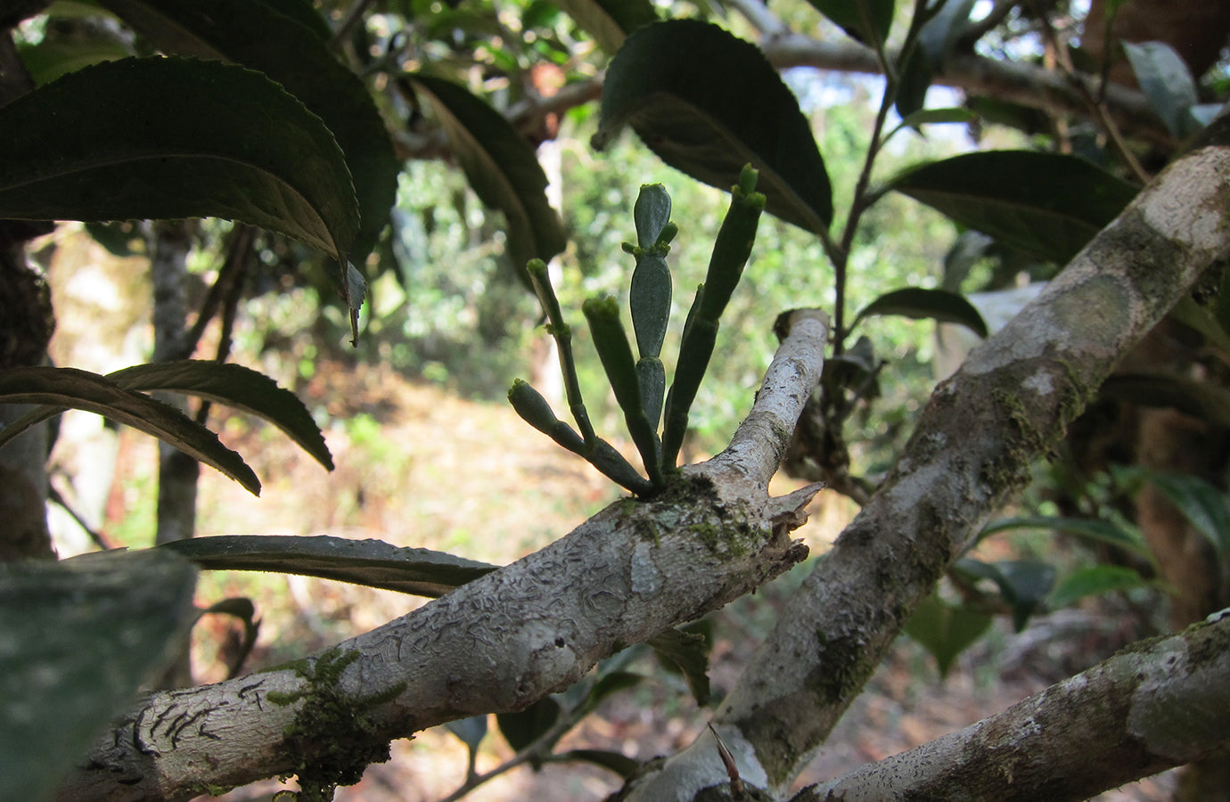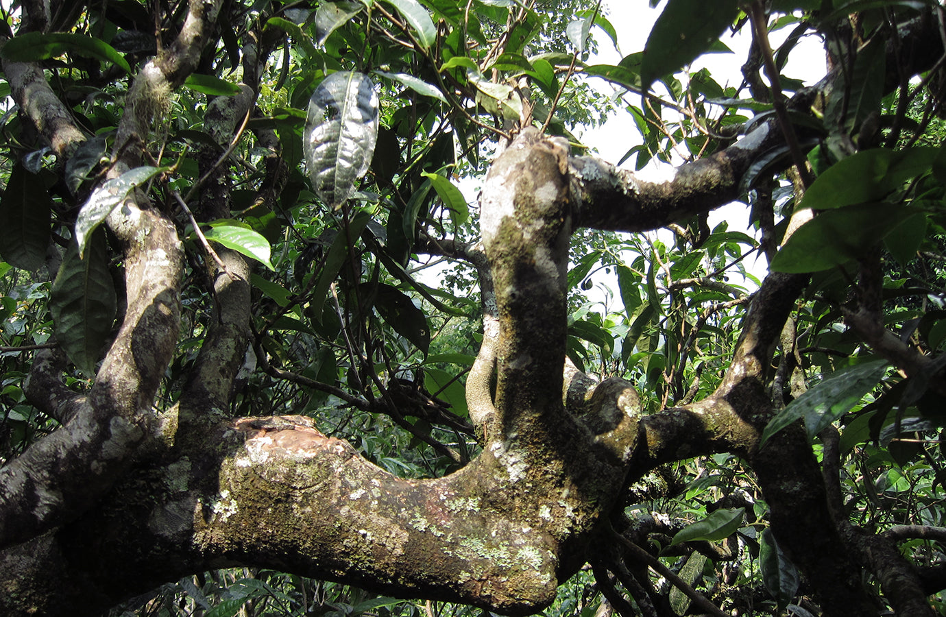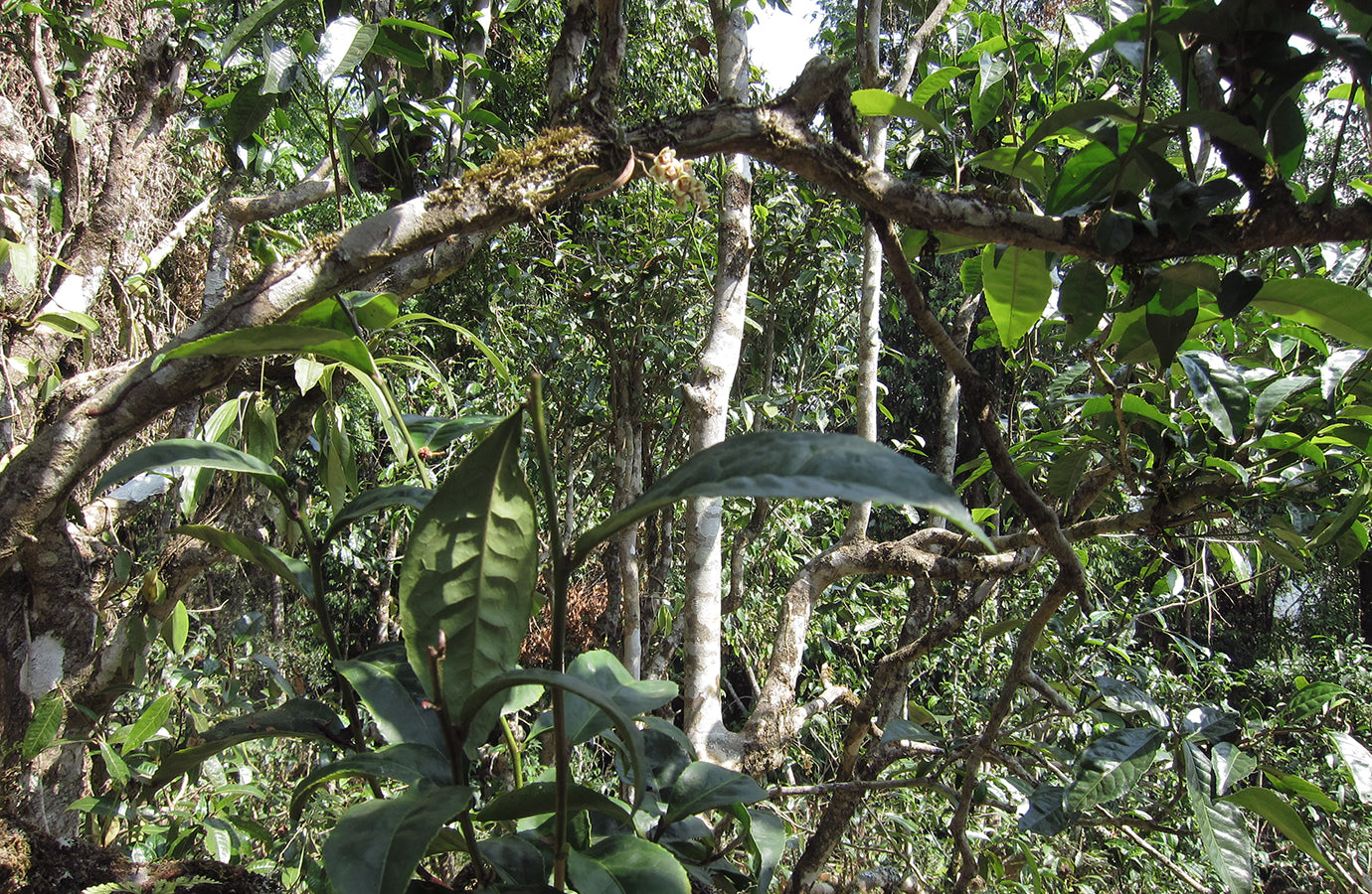 The trees are surrounded by a truly diverse biodiversity. Orchids or herbs growing on trees can often be found on their trunks. The families of each mountain village have their own trees to care for (the land is owned by the Chinese state). The environment of the trees is not even approached with any kind of chemicals, they are basically weeded with a sickle and a hoe, and otherwise the trees are left to grow naturally. Each family decides which harvest and picking dates they choose. Some people pick the leaves only once a year, in spring, others several times, in summer and autumn. The more skilled also process the tea leaves, and others sell the fresh leaves.