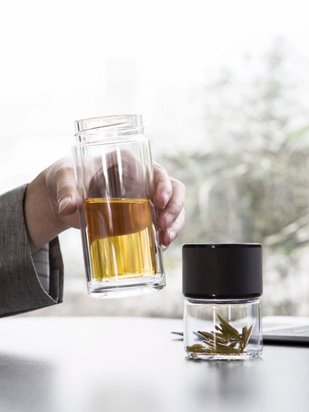 Slowly turn the thermos upside down so that the water can flow to the tea leaves.